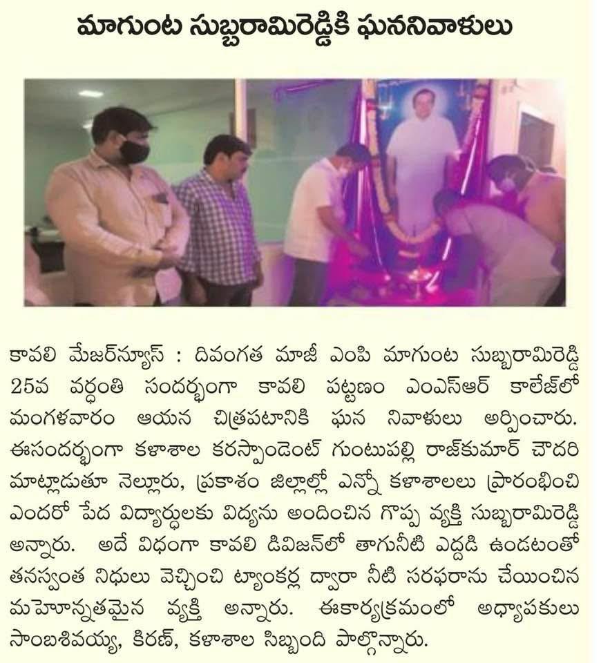 Remembrance of our college founder Shri.Magunta .Subbarami Reddy garu